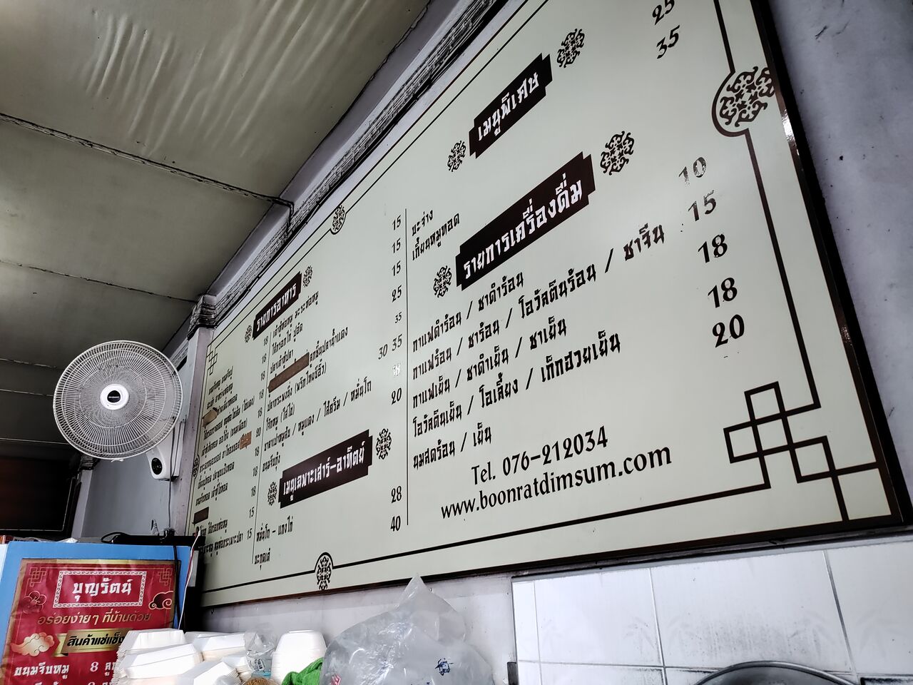 店名は「Boonrat Dim Sum/ブーンラットディムサム」、調べたところ3店舗ほど展開しているローカルチェーン店の様子。